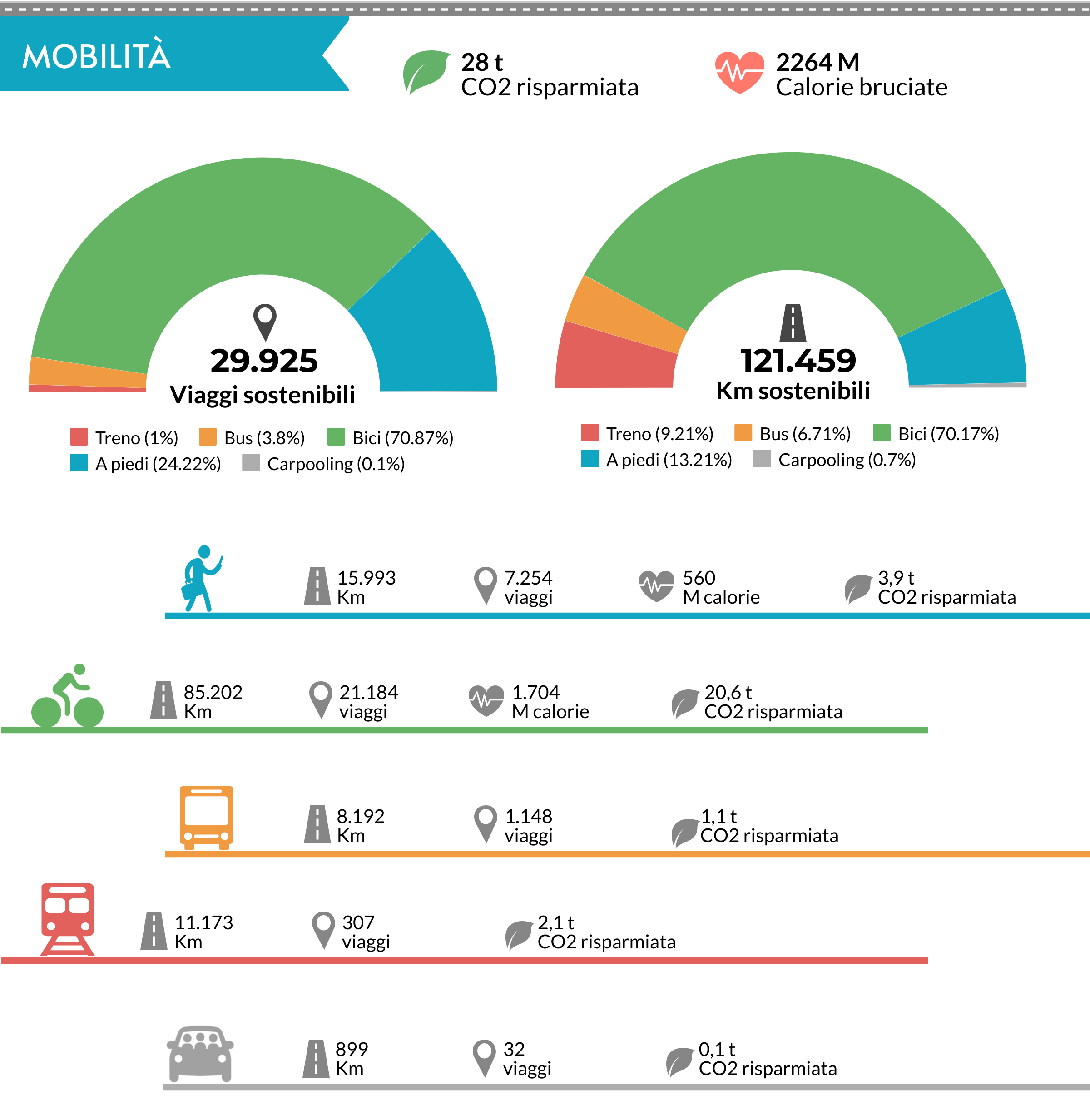 Con 121459 KM di viaggi sostenibili, abbiamo già risparmiato 28t di CO2!
