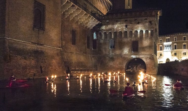 Suggestiva fiaccolata di subacquei nel fossato del Castello Estense