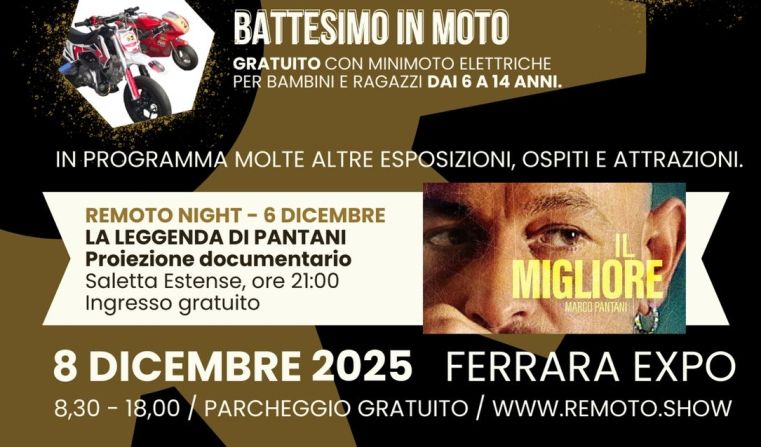 Serata ad ingresso gratuito dedicata al campione romagnolo di ciclismo, in programma sabato 6 dicembre 2025 alla Sala Estense . Con la proiezione del docufilm "Il migliore - Marco Pantani", si anticipa l'avvio della iniziativa espositiva Remoto 2025 in programma l'8 dicembre 2025 a Ferrara Expo