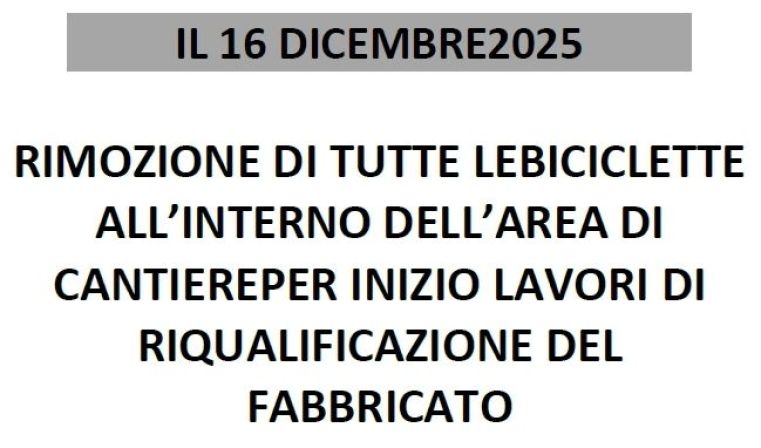 Dal 16 dicembre 2025 la rimozione delle biciclette dall'area tra le vie Felisatti-Costituzione-San Giacomo e piazzale della Stazione.